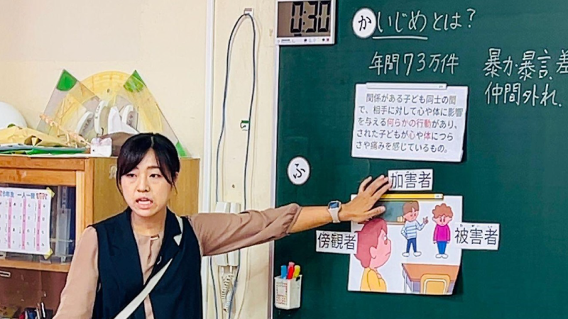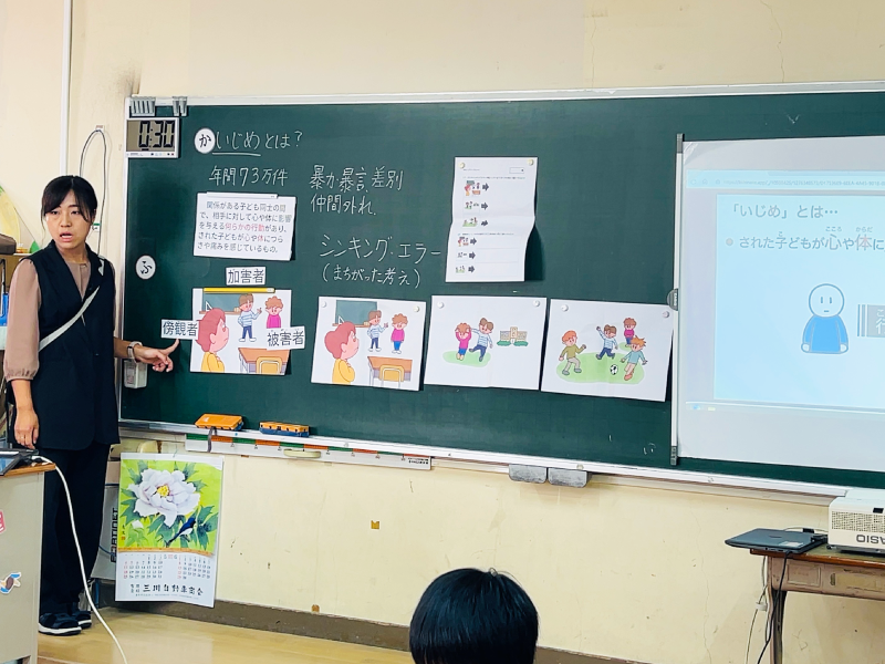 指導者:日本では毎年とてもたくさんのいじめが起きています。では、いじめとは何でしょうか。 (※いじめの定義についての動画を視聴後、読み聞かせを実施)