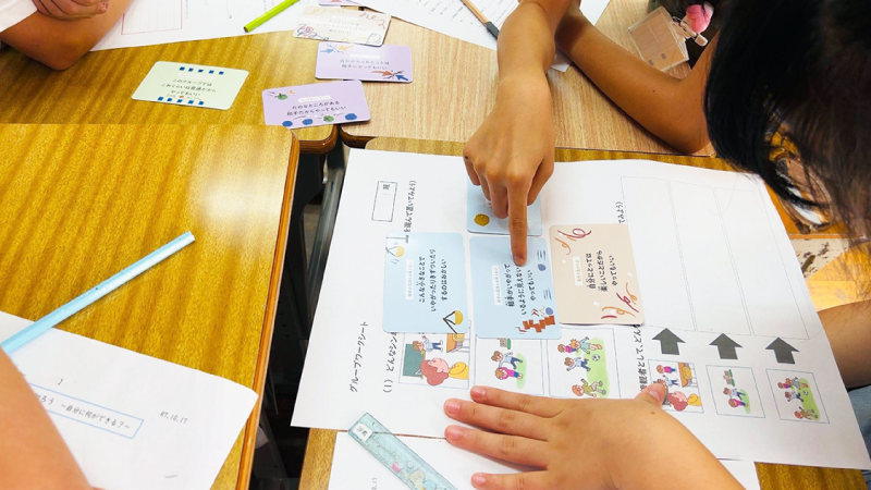 いじめ予防ゲミワに加え、子どもの発達科学研究所監修「いじめ、みちゃった!」の絵本を活用した授業が袋井市立三川小学校にて行われました。シンキングエラーカードの活用、他学年に絵本を広める計画、そして読み聞かせの実践と、子どもを主体とした広がりのある実践です。